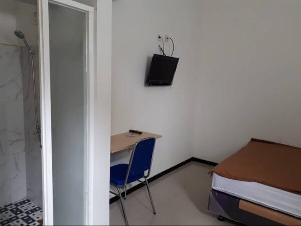 Dimensi kamar ada yang 3×3 ada yg 3×4 (Ada singgle ada juga yg double bed)